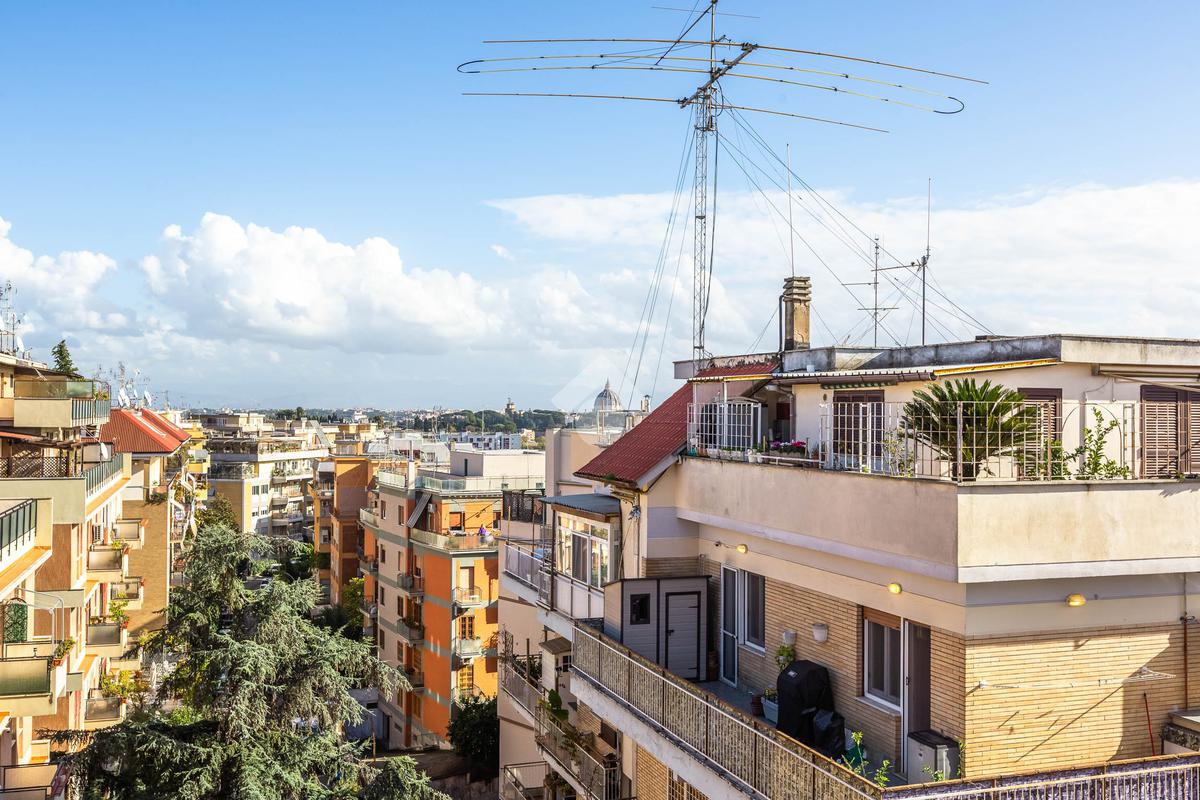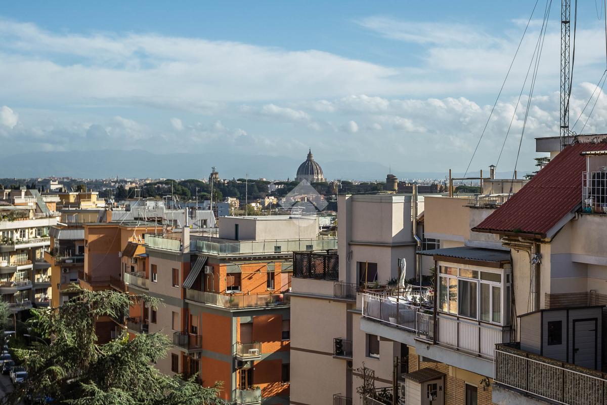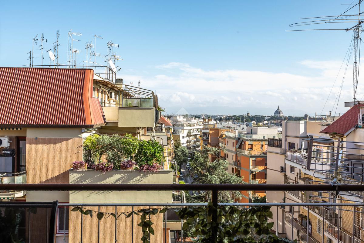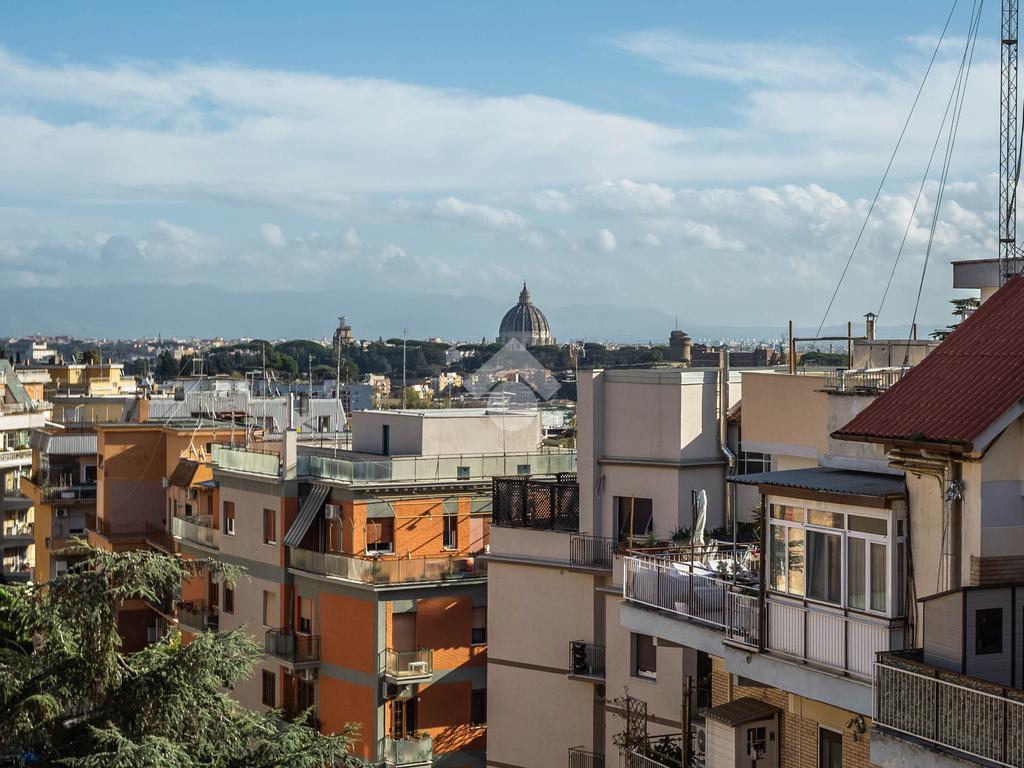 Nel cuore del quartiere Aurelio e più precisamente, in Via Andrea Alciato, proponiamo in vendita un attico di 113 mq commerciali. L'immobile si trova all'ultimo piano, servito da ascensore, e offre una disposizione funzionale degli spazi. L'appartamento è composto da ingresso, soggiorno, sala pranzo, cucina, due camere matrimoniali, un ampio bagno con possibilità di crearne un secondo. La zona giorno si apre su un terrazzo vista cupola San Pietro, ideale per momenti di relax all'aperto, mentre i quattro balconi aggiungono luminosità e ventilazione agli ambienti interni. Completa la proprietà un posto auto condominiale, garantendo comodità e praticità e una cantina. La posizione strategica consente di godere della tranquillità del quartiere, pur essendo ben collegata al centro città e ai principali servizi. Una soluzione abitativa che coniuga spazio e funzionalità, perfetta per chi cerca un'abitazione accogliente e ben collegata.