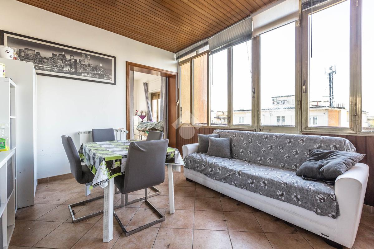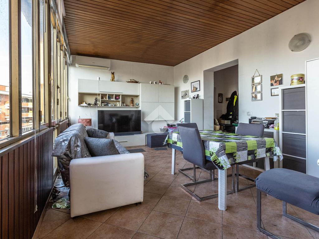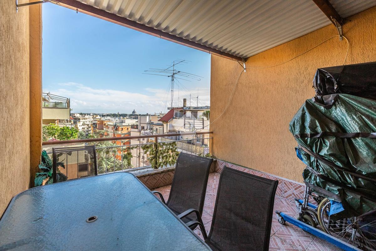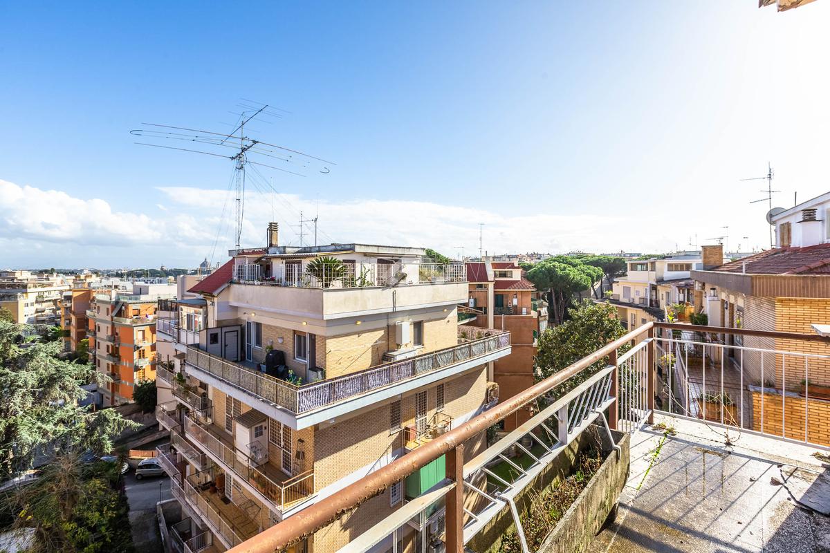 Nel cuore del quartiere Aurelio e più precisamente, in Via Andrea Alciato, proponiamo in vendita un attico di 113 mq commerciali. L'immobile si trova all'ultimo piano, servito da ascensore, e offre una disposizione funzionale degli spazi. L'appartamento è composto da ingresso, soggiorno, sala pranzo, cucina, due camere matrimoniali, un ampio bagno con possibilità di crearne un secondo. La zona giorno si apre su un terrazzo vista cupola San Pietro, ideale per momenti di relax all'aperto, mentre i quattro balconi aggiungono luminosità e ventilazione agli ambienti interni. Completa la proprietà un posto auto condominiale, garantendo comodità e praticità e una cantina. La posizione strategica consente di godere della tranquillità del quartiere, pur essendo ben collegata al centro città e ai principali servizi. Una soluzione abitativa che coniuga spazio e funzionalità, perfetta per chi cerca un'abitazione accogliente e ben collegata.