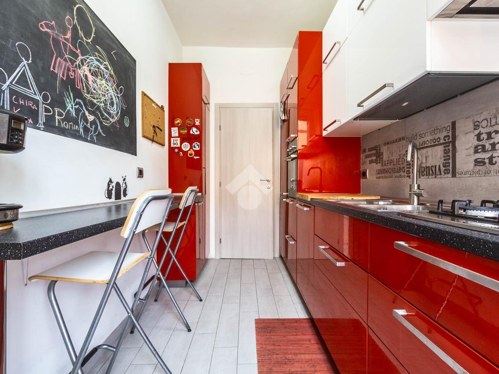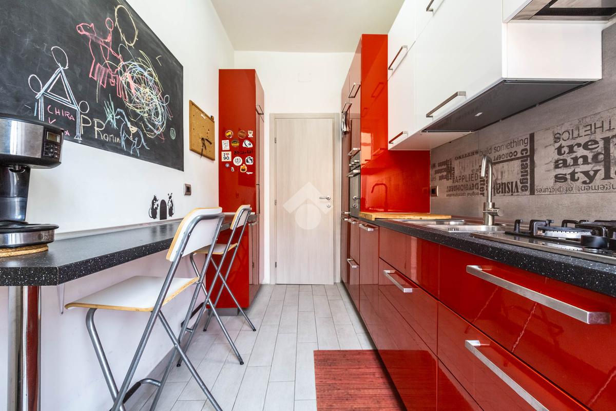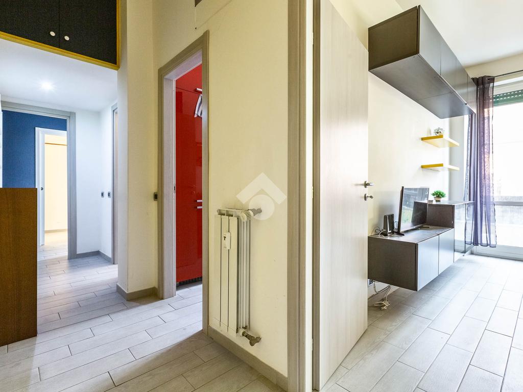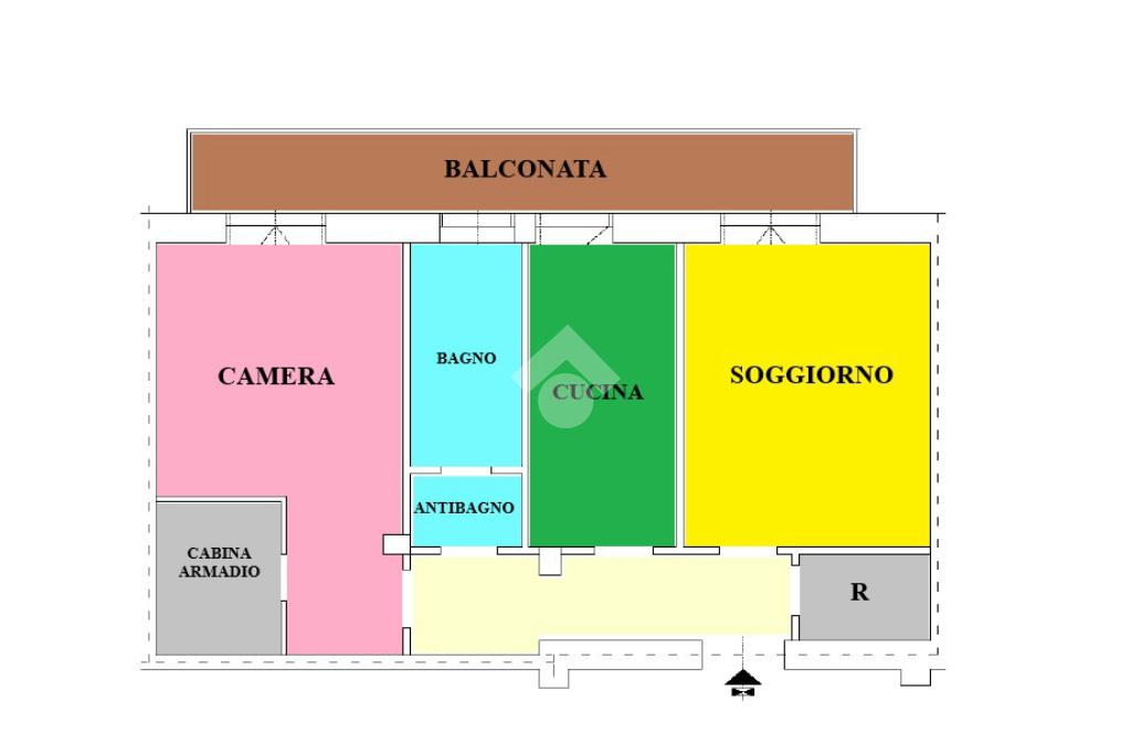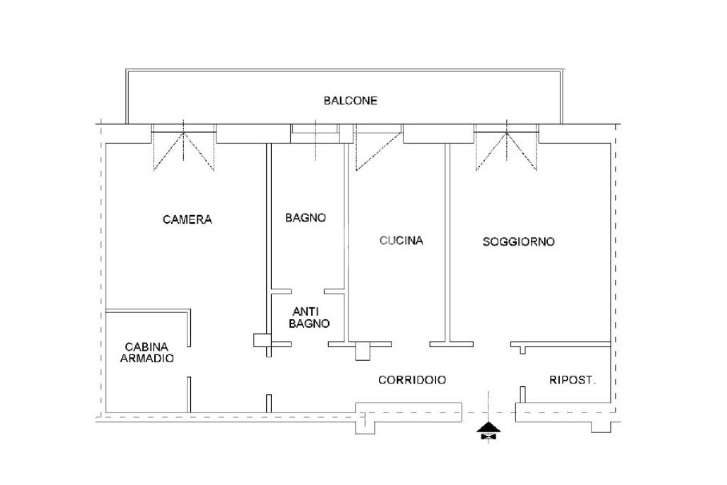 L'appartamento si compone di ingresso, soggiorno, cucina, bagno ed antibagno, camera da letto con cabina armadio, ripostiglio e balcone che prende tutti gli ambienti.